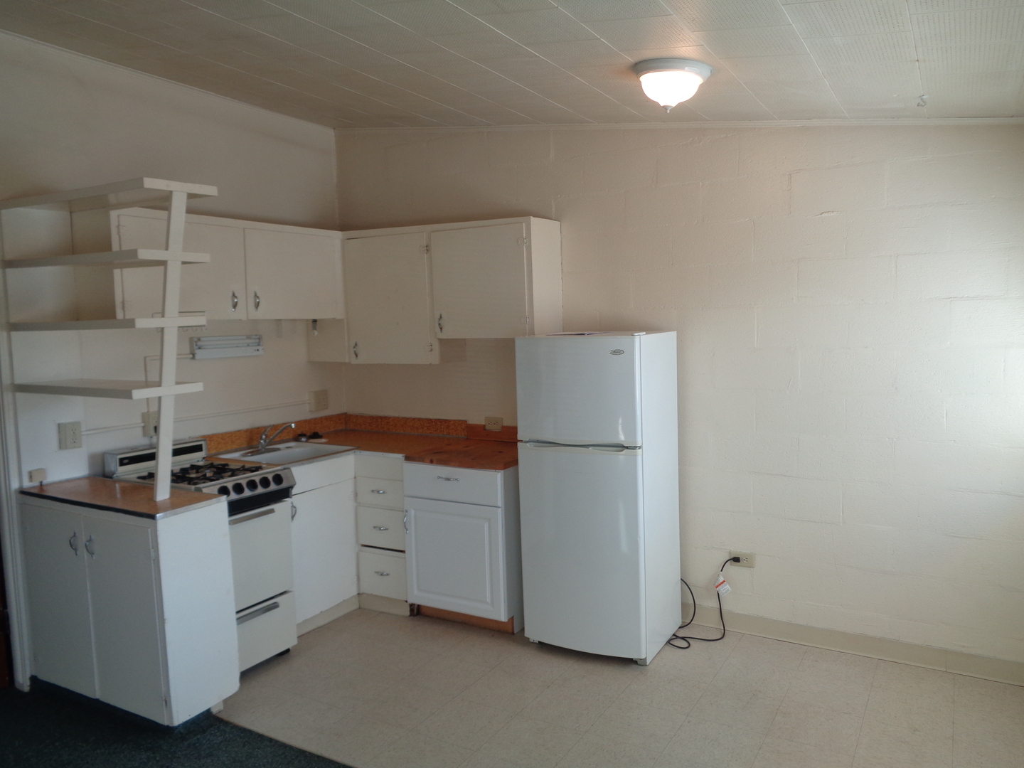 The living room, kitchen and dining area are in an open space with high ceilings. Huge walk-in closet in the bedroom with attached full bathroom.